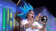 Mit viel Artistik, vielfältiger Mimik im Gesicht, sowie mit irrwitzigen Verrenkungen ihres Gummi-Körpers, lässt die sportliche Verena Konietschke als Zauberer Irrwitzer das Publikum schmunzeln, lachen und jubeln.